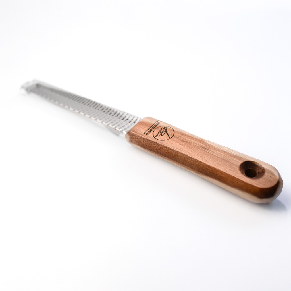 La grattugia tartufi in acciaio inox con manico in legno di noce e taglio universale è ideale non solo per il tartufo nero, ma anche per formaggi, spezie e frutta.